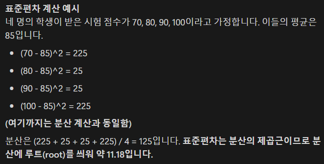print(f"분산: {variance}, 표준편차: {std_dev}, 범위: {data_range}")